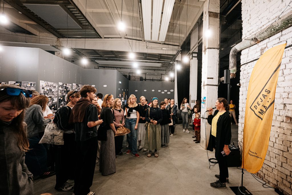 Izstāžu telpā pēc izrādes mūs uzrunā Inta Balode, kas, kā viņas kolēģi un viņa pati atzīst, ir “vainīga” pie šīs Dejas mājas “Kurtuvē”. Un cik labi, ka tādi “vainīgie” tiek atrasti un celti gaismā! Inta oficiāli atklāj laikmetīgās dejas vēsturei veltīto izstādi un saka ievadvārdus par godu drīz gaidāmajai laikmetīgās dejas 30 gadu jubilejai Latvijā. Viņa piebilst, ka izstādes jaunāko gadu materiāls vēl tiek gatavots, bet paši horeogrāfi un izrāžu autori naski vien aizpilda patukšās sienas ar savu un kolēģu svaigāko veikumu, pierakstot uz tām izrāžu nosaukumus, pirmizrāžu datumus un vietas, un tas mani vedina uz domām par kopradi un savstarpēju atbalstu kopienas piederīgo starpā.