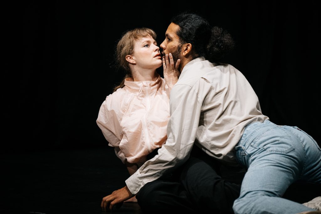 Nākamā ir Luksemburgas mākslinieku Sāras Baltcingeres (Sarah Baltzinger) un Izaja Vilsona (Isaiah Wilson) dejas izrāde “Megastruktūra” (“Megastructure”). Skatītāji ir savās vietās, un gaismas sāk lēnām dzist, bet neizdziest pavisam, kā tas parasti ierasts izrādēs. Zālē valda puskrēsla un klusums. Uz skatuves uznāk jauna sieviete un vēro skatītājus. Viņa vērš savu skatienu virzienā, no kura dzird kaut mazāko troksni, pat nedaudz pārmetoši (vai man tikai tā šķiet?). Viņa skatās uz skatītājiem tik ilgi, līdz zālē nav dzirdams neviens čuksts, krēsla čīkstoņa vai konfektes papīrīša čaukstināšana. Izrāde sākas, un sievietei uz skatuves pievienojas jauns vīrietis. Viņu abu kustību estētika šķiet ļoti specifiska – tāda, kas būtu drīzāk raksturīga marionetei, ne cilvēciskai būtnei. Abu dejotāju ķermeņu daļas laiku pa laikam atsitas pret grīdu, veidojot ritmisku partitūru. Savdabīgs ir arī veids, kā viņi eksistē kopā, – it kā puzles gabaliņi, kas papildina viens otru, reizēm paverot viens otram jaunas kustību iespējas, bet reizēm nobloķējot otra ķermeni. Viņu abu pārvietošanās pa skatuvi atgādina dzīvu pieminekli, kas eksistē kādā neizprotamā agregātstāvoklī. Izrādei tuvojoties noslēgumam, arī kustību intensitāte pieaug un liekas, ka pustumsa izvēlēta, lai skatītāja acs sāktu tvert notiekošo pa kadriem, veidojot stroboskopisku efektu[2]. Kā vēlāk stāstīs paši mākslinieki, izrādei nav ārēja iedvesmas avota. Viņi abi, būdami pāris, aizbraukuši rezidencē un sapratuši, ka savstarpējā koeksistence arī ir izrādes centrālā tēma. Es tiešām sen nebiju redzējusi tik iespaidīgu izrādi ar tik minimāliem izteiksmes līdzekļiem – neapšaubāmi, galvenais no tiem bija kustība.