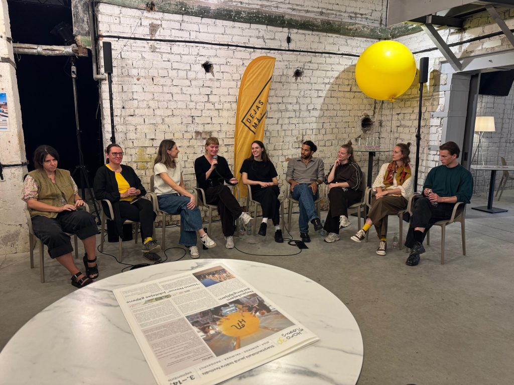 Uzturoties “Kurtuvē” pēc izrādes, skatītāji tiek pulcēti, lai ieklausītos diskusijā ar izrāžu veidotājiem. Sintija Siliņa sarunu meistarīgi moderē un ļauj gan māksliniekiem pastāstīt par iedvesmas impulsiem, gan klātesošajiem ieskatīties konkrētu ainu tapšanā, saiknē ar skatītājam nezināmo. Jaunā teātra festivāla “Homo Novus” programmas kuratore Santa Remere un pie Dejas mājas “vainīgā” Inta Balode vēl steidz teikt iedvesmojošus ceļavārdus nākamajiem laikmetīgās dejas 130 gadiem Latvijā (saules mūžu!) un tās jaunajām mājām “Kurtuvē”.