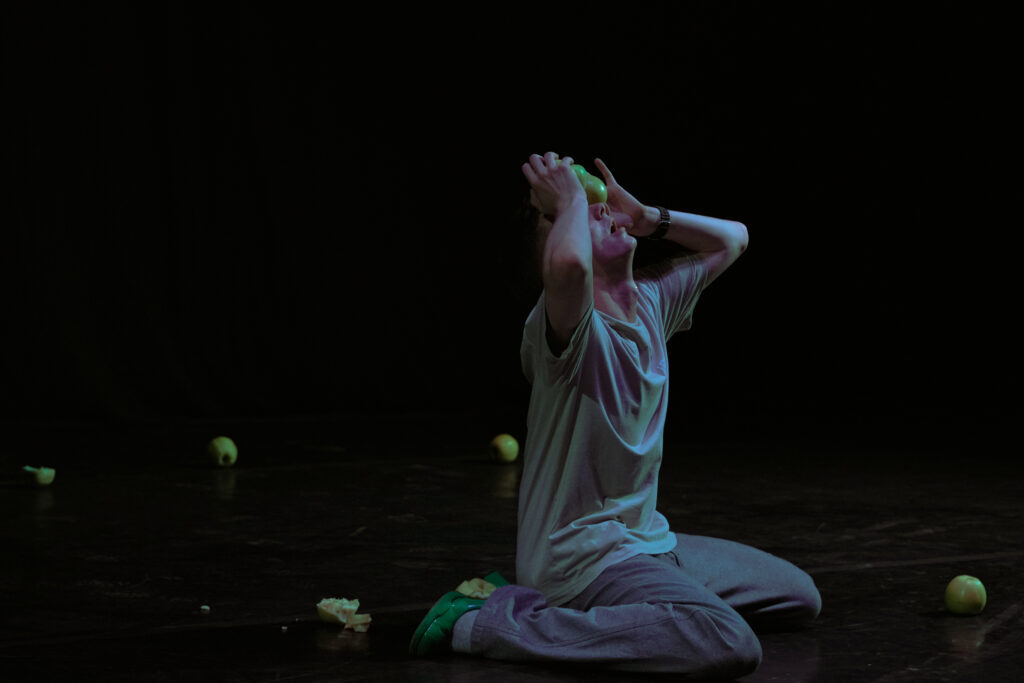Izrādē “Trauslais spēks” māksliniece Lelde Feldmane caur kustību, akrobātiku un vārdu transformē personisko pieredzi izteiksmes valodā, ko caurvij spēks un jūtīgums, izturība un ievainojamība. Izrādes centrā ir vertikāls pilons, kas kļūst par pasaules asi – axis mundi –, un vienlaikus ir gan balsts, gan izaicinājums, aicinot mākslinieci izzināt līdzsvaru starp spēku un trauslumu. Ciešā kontaktā ar dejotāju grupu, caur savstarpēju uzticēšanos un kopīgu kustību Lelde Feldmane panāk levitācijas ilūziju – stāvokli, kur ķermenis pretojas smagumam un atveras attiecībām. Šī fiziskā prakse kļūst par simbolisku telpu, kurā iemiesojas rūpes, atbildība un klusa, bet spēcīga līdzcietība.