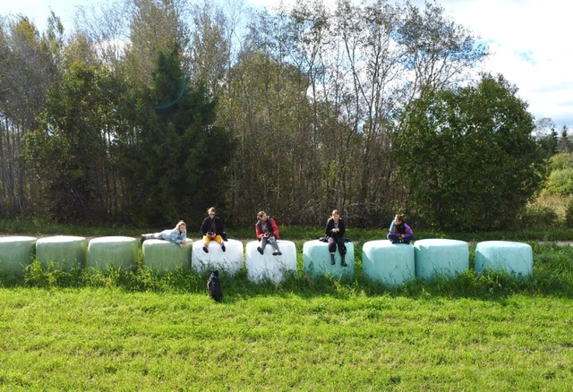 Sabīne: Man ir svarīgi vairāk iepazīt jūs katru individuāli un arī daudz ko mācīties, tā ir pieredzes apmaiņa. Jūs visi esat iepazīti labāk. Katrs nāk ar savu pienesumu, katra lieta jau kaut kad ir darīta, bet ir labi uzzināt jaunu aspektu, no kura skatīt šo tēmu. Būt šeit ir iedvesmojoši, jo ir klusums un nav pilsētas kņadas. Ir vieta savām domām. Esot šeit, es sapratu, ka arī vēlos mēģināt veidot savu solodarbu. Redzu, ka citi to dara, varbūt arī man to vajag. Staigājot pa “Kalniņu” saimniecības teritoriju, domāju – ak, Dievs, cik šeit ir maģiski! Es stāvu saulē, un divas minūtes ir pilnīgs klusums, kā filmā.
