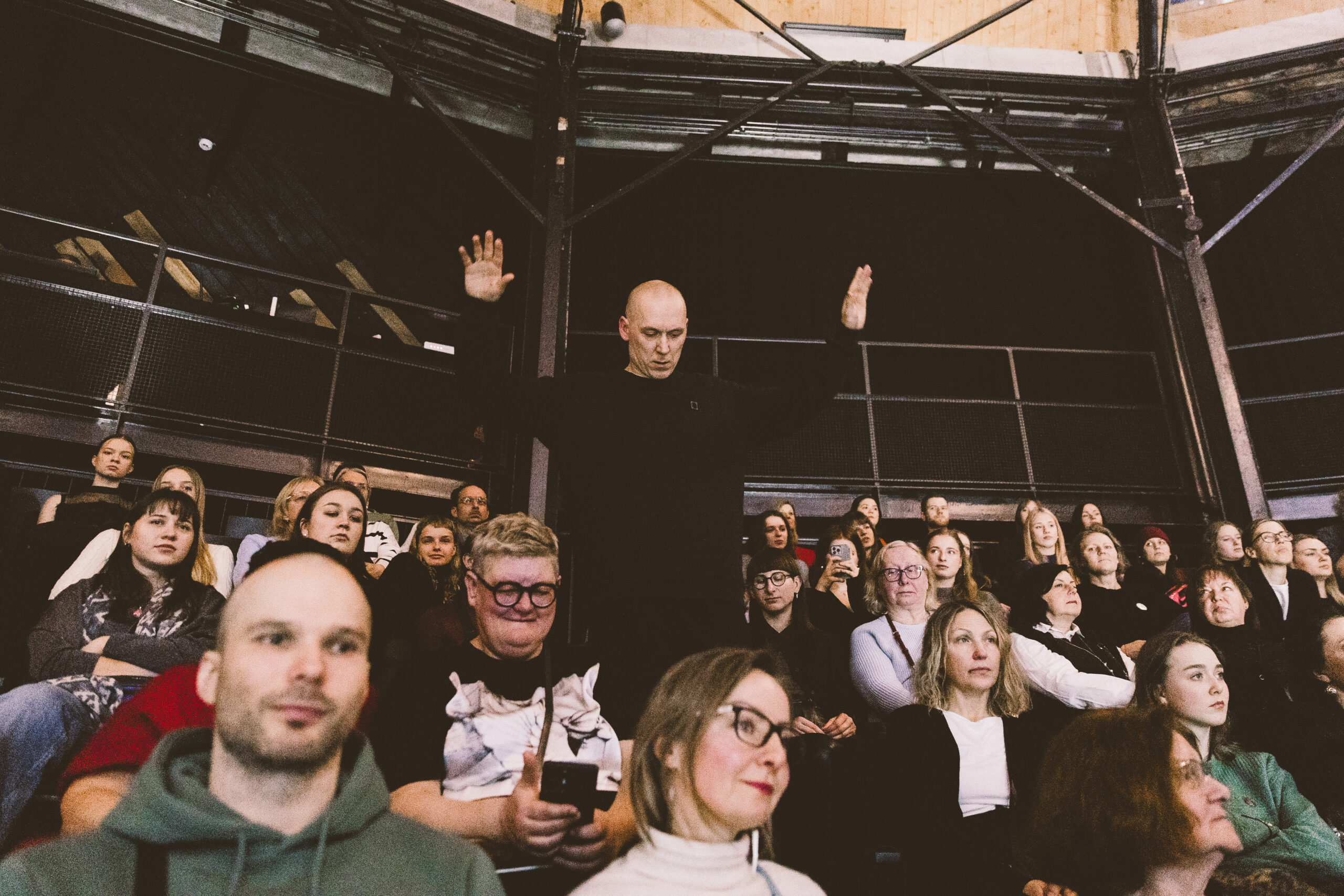 Ienākot plašajā cirka arēnas zālē, tā ņirb un čurkst no sarunām skatītāju rindās. Zāle ir pārpildīta, un vēl pēdējie skatītāji steidzīgi meklē brīvas vietas. Auditorijā ir pazīstamas sejas no dejas kopienas, uzticamie skatītāji, kas jau gadiem seko dažādajām laikmetīgās dejas norisēm visā Latvijā, kā arī tie, kuri, iespējams, ar laikmetīgo deju šovakar saskaras pirmo reizi.