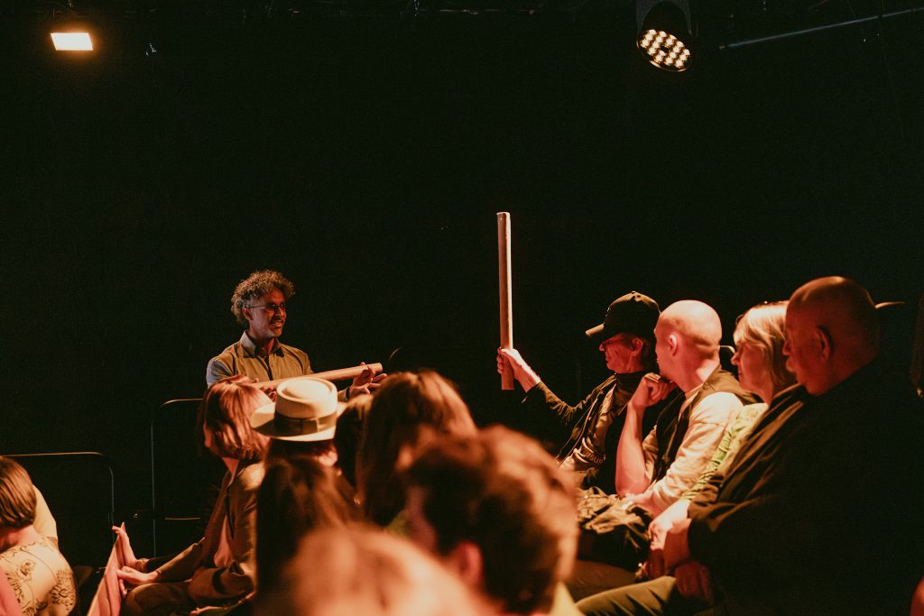Varbūt tieši tur slēpjas mana nepatika – skatītāju iesaistīšana izrādē šķiet mākslinieciski banāla, radot manipulatīvu disonansi. Darbs sevi pozicionē kā inovatīvu un zinātniski sarežģītu. Aprakstā tiek vairākkārt uzsvērts, ka izrāde paredzēta gan nedzirdīgai, gan dzirdīgai publikai, ka tā ļauj dažādu sabiedrības grupu pārstāvjiem pieredzēt mākslu kopā, izmantojot īpaši radītas membrānas un paneļus. Lieliski! Gatavojot šo rakstu, es prātoju, kā vēl varu iedziļināties izrādes kontekstā un ko vēl izpētīt saistībā ar tās tapšanas procesu līdztekus faktam, ka to piedzīvoju klātienē. Un tad aptvēru, ka tomēr ir gana arī reflektēt tikai par faktisko pieredzi klātienē, ka man nav jāslēpj nepatika, inteliģenti spekulējot par šī darba apstākļiem. Tā bija izrāde festivāla ietvarā ar uzaicinātiem māksliniekiem no Portugāles. Es nezinu viņu dziļākās motivācijas un dzīves kontekstu, un man izrādes laikā nekļuva skaidrs viņu nodoms, kas parādās aprakstā, – pulcēt kopā dažādas dzirdes. Izrādē es nejutu, ka šī kopības pieredze būtu sociāli vai mākslinieciski dziļi pārdomāta. Drīzāk tā atstāja iespaidu par tehnisku risinājumu, kas labi iederas iekļautības diskursā saistībā ar nedzirdīgo kopienu, bet nepaplašina šo ideju tālāk.